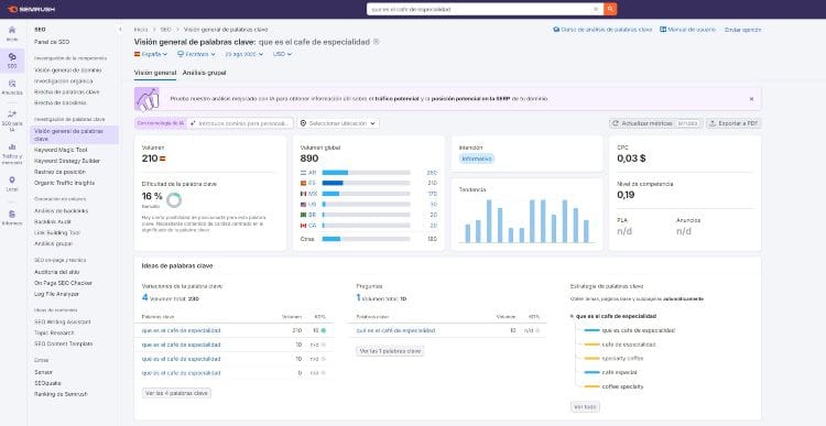 1. Piensa en relaciones semánticas. Mientras una herramienta SEO te devuelve palabras relacionadas por volumen, ChatGPT es capaz de ver la conexión semántica entre conceptos. Por ejemplo, si le pides keywords sobre “café de especialidad”, no solo te dirá “comprar café online”, sino que puede sugerirte “cafeteras pour-over”, “origen del café etíope” o “cómo diferenciar un café comercial de uno de especialidad”. Es decir, ideas que surgen de contexto, no solo de búsquedas literales.